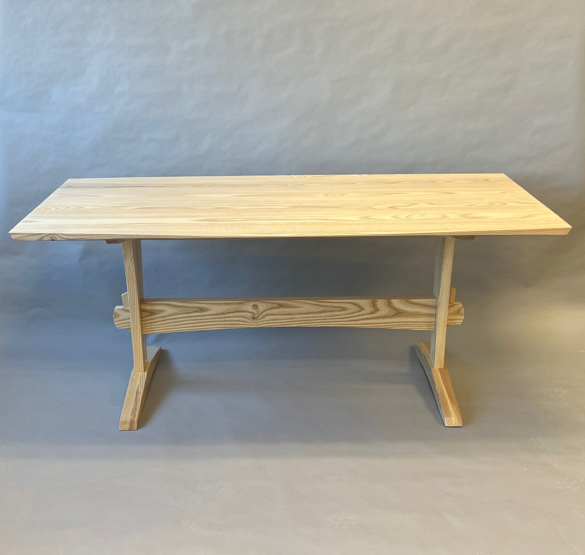Two trestle tables with a modern flair have now been completed with the wood from local ash trees felled in spring of 2025. Along the way many opportunities were had to join together and learn about the process of transforming the dying ash trees into pieces of furniture with great beauty and utility. We learned about the forest ecosystem, the properties of wood, the technique of sawing and drying lumber and tusk and tenon joinery.